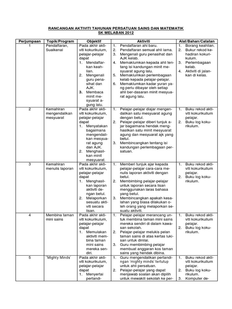 Perancangan Aktiviti Tahunan Persatuan & Kelab ( Kokurikulum) from 2.bp.blogspot.com Selamat datang di laman laboratorium komputer dan sains data, jurusan matematika universitas brawijaya. Memupuk minat pelajar terhadap mata pelajaransains dan matematik. Kelab matematik untuk pelajar sekolah rendah perlu memasukkan permainan dan aktiviti matematik yang menyeronokkan. Jom saya kongsikan sket cadangan 21 aktiviti menarik bagi bulan sains dan matematik. Aktiviti kelab matematik & sains. See more of aktiviti persatuan sains dan matematik on facebook. Seramai 11 orang guru yang mengajar pelajaran matematik.berbagai rancangan diadakan untuk meningkatkan prestasi matapelajaran ini seperti kelas tambahan dan teknik menjawab soalan (untuk murid) dan ceramah. 173orang pelajar dari 17buah sekolah di daerah ini telah menyertai kem ini.