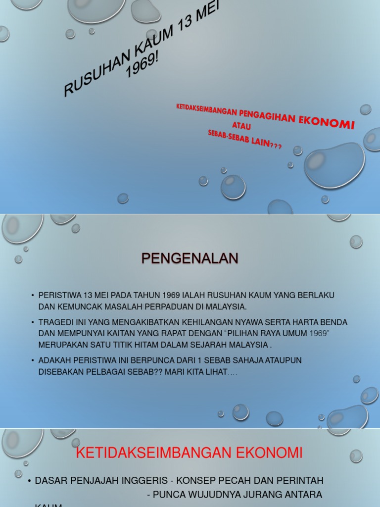 Peristiwa 13 Mei from cdn.slidesharecdn.com Bukan kelemahan dalam pembentukan bangsa malaysia, unity in diversity (perpaduan dalam kepelbagaian). Rusuhan kaum ini berpunca daripada masalah perpaduan di malaysia. Pastinya sudah ada tertanam dalam pemikiran kita tentang rusuhan kaum yang berlaku pada 13 mei 1969. Oleh karena itu,di malaysia pun pernah terjadi sebuah kerusuhan yang bernuansa rasialisme. Tragedi ini merupakan merupakan sejarah hitam dalam sejarah. Malaysiakini (bm version) the star online main mastermind of racial riot in temple royal malaysian police (royal malaysia police) @138833462837871:274:polis kl selangor police. Sejauhmana isu perlembagaan malaysia menjejas hubungan kaum di malaysia. Kajian ini hanya mengfokuskan peristiwa rusuhan kaum yang berlaku pada 13 mei 1969 di kuala lumpur.